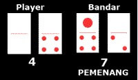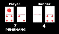 – Bandar akan selalu menang jika mendapat jumlah kartu yang sama dengan player.